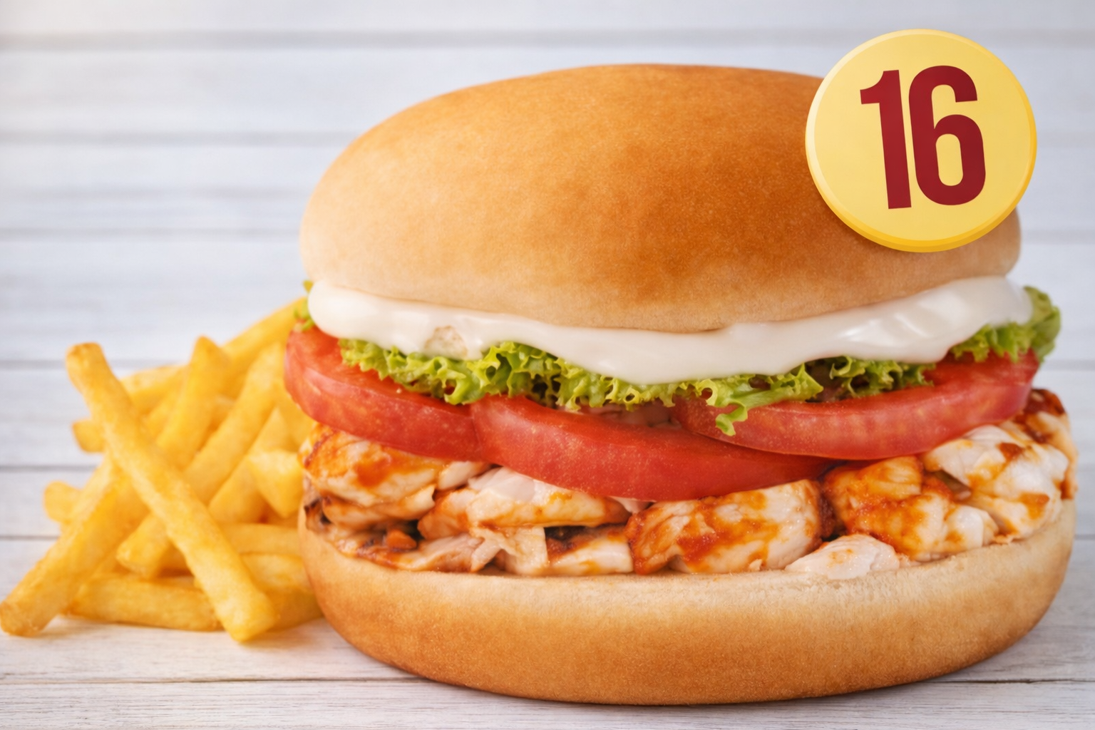 Sabrosos camarones ecuatorianos crispy, acompañado de tomates, lechuga y mayo casera palmas peruanas, incluye porción de papas fritas naturales.